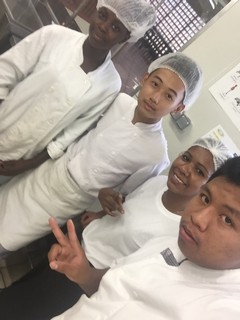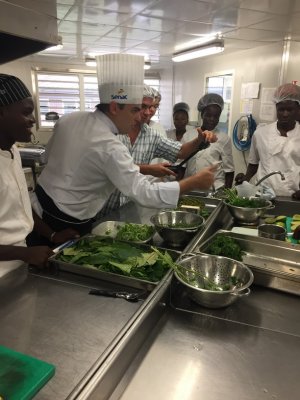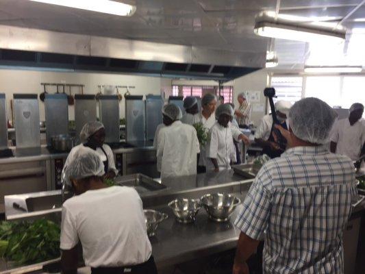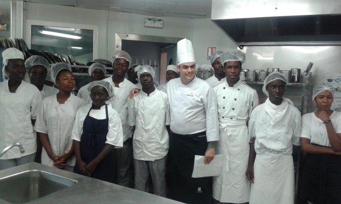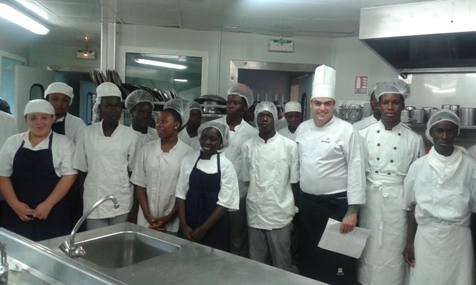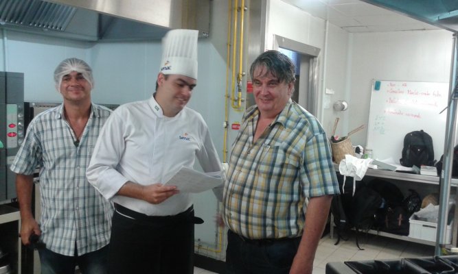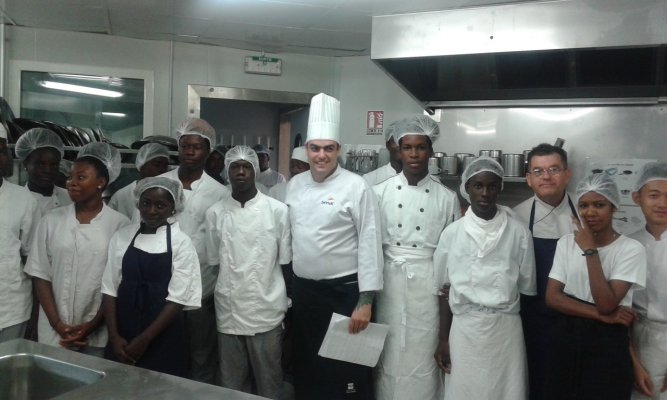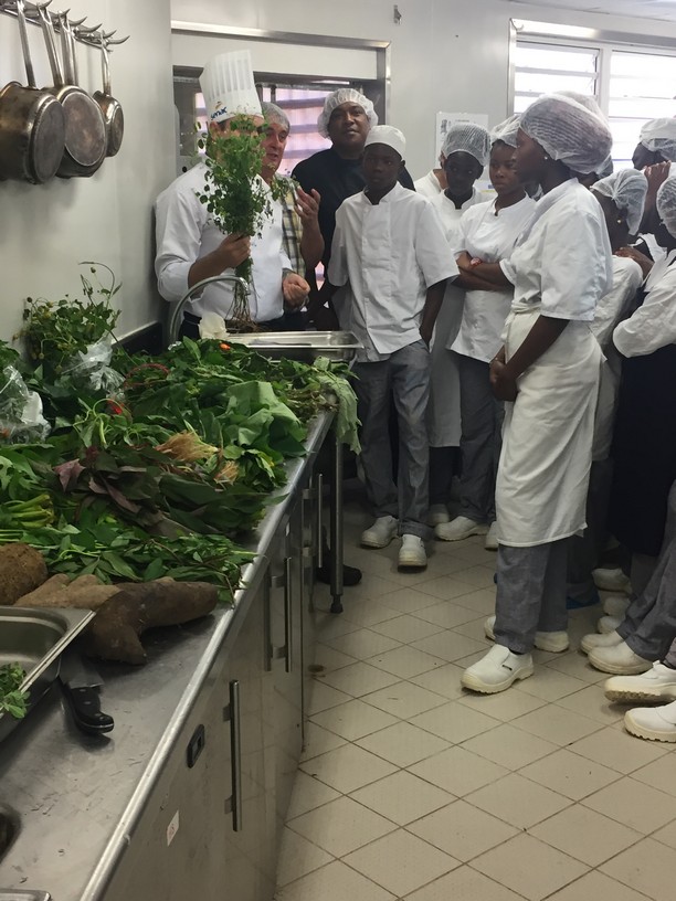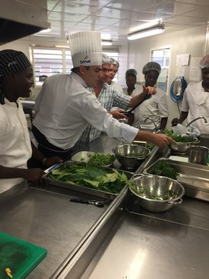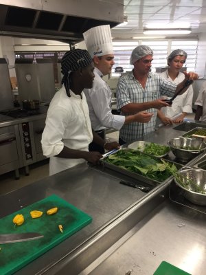 Les élèves de la 1ère APR (Agent Polyvalent de Restauration) du Lycée Lumina SOPHIE et leur professeur Mme DEGARDIN, les élèves de Tle BP Cuisine et CAP Cuisine du lycée Bertène JUMINER ainsi que leurs professeurs : M. SOUBAYROL et M. MICHELY accueillent ce jeudi 18 janvier 2018 le chef brésilien Michael FURTINI ABRAS, de passage en Guyane
